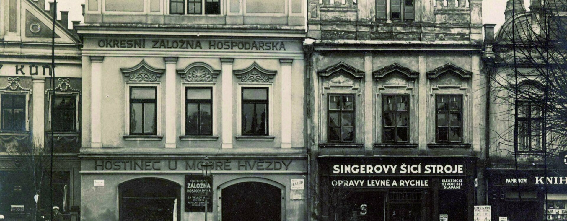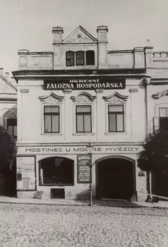 Již před první světovou válkou se Okresní záložně hospodářské podařilo usídlit na prestižní adrese – přímo na německobrodském náměstí. Stala se vlastníkem měšťanského domu U Modré hvězdy (č. p. 168) v jeho severovýchodním rohu, čímž se dostala do těsné blízkosti svého hlavního místního rivala – městské spořitelny. V poklidné maloměstské atmosféře působila záložna v historické památce až do počátku 30. let 20. století.