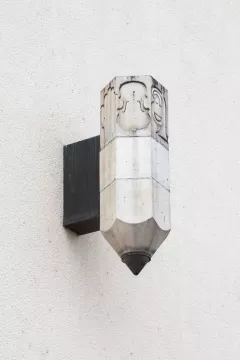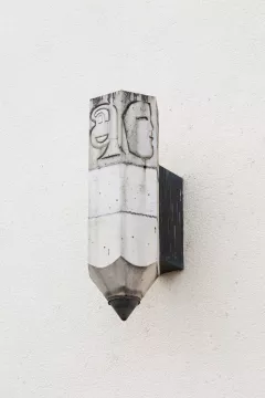 Autoři předložili návrh keramické tužky se symboly jednotlivých oborů umělecké školy a skleněným hrotem, velmi precizně zpracovaný, včetně grafických listů Jana Exnara s reliéfními symboly hudební, výtvarné, dramatické i taneční výchovy. Právě přesvědčivé zpracování návrhu hrálo roli při jeho kladném přijetí.