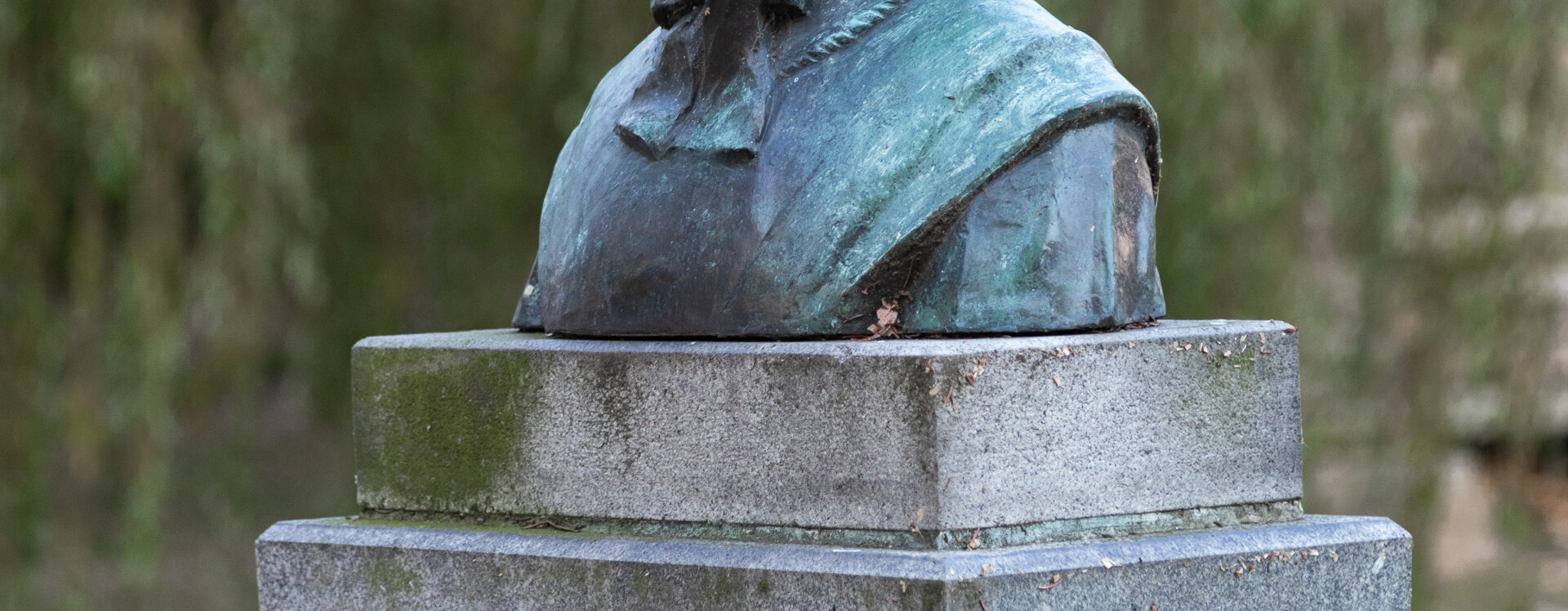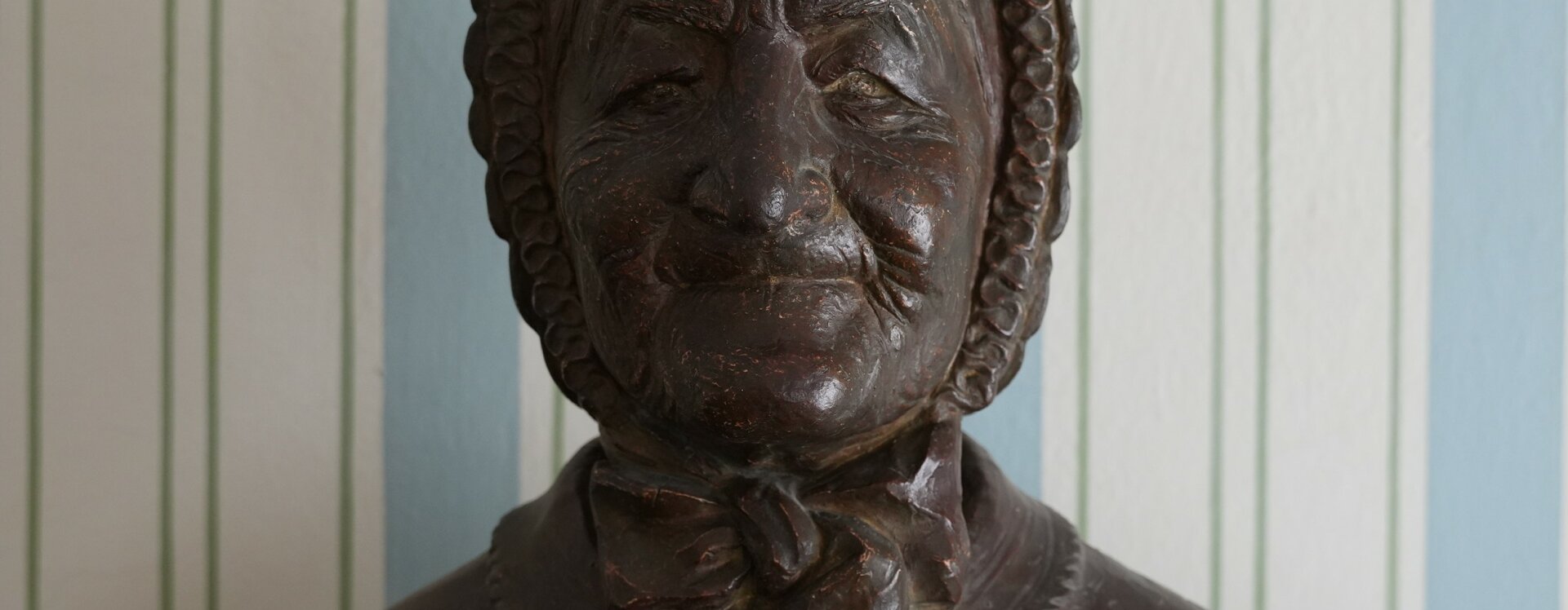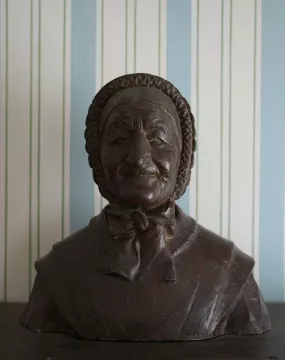 Autorkou bronzové busty byla sochařka Vlasta Dohnalová-Pešanová (1897–1990). S Německým Brodem ji spojovalo, stejně jako jejího manžela, sochaře a řezbáře Damiana Pešana, přátelství s Otakarem Štáflem, malířem, grafikem a brodským patriotem. I když Otakar Štáfl žil už od studií v Praze, byl v Brodě zapojen jak do příprav oslav výročí založení gymnázia a výročí úmrtí Karla Havlíčka, tak do organizace oslav odhalení pomníku Havlíčkovy matky.