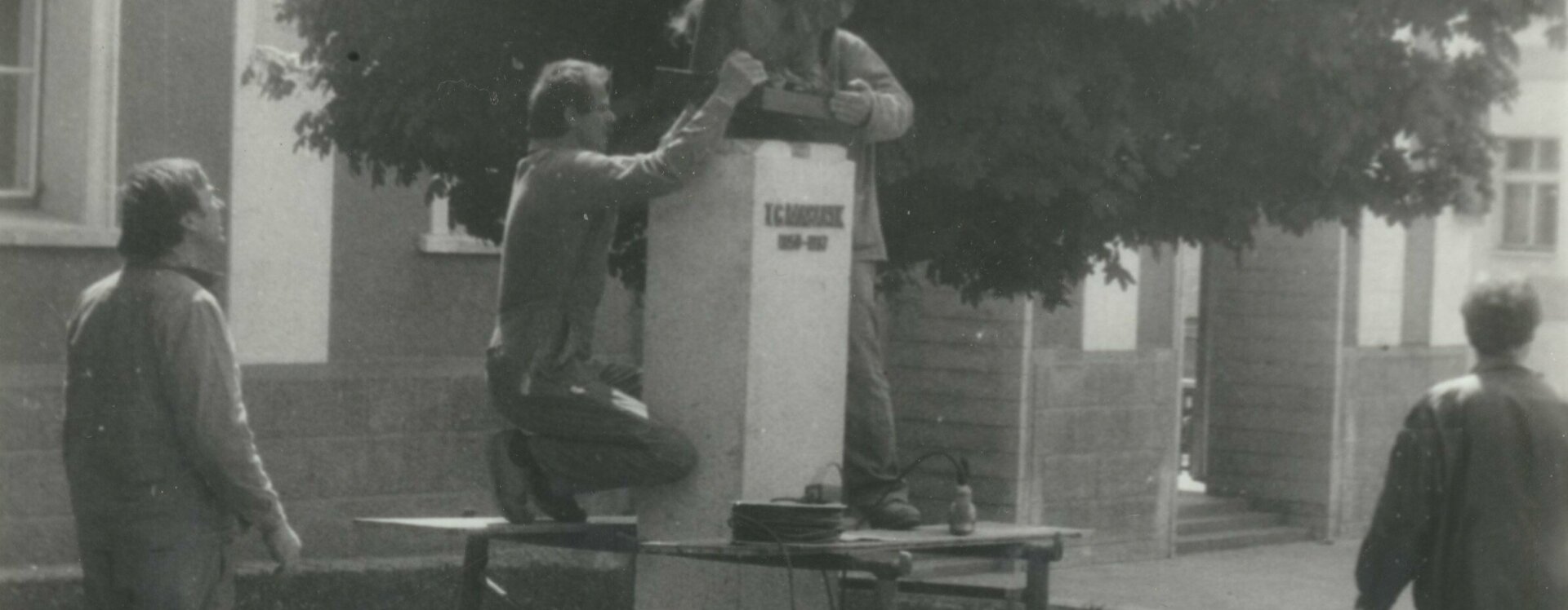 Po roce 1989 rozhodla místní organizace Občanského fóra o obnovení pomníku. Bylo pro něj vybráno nové místo před budovou bývalého augustiniánského kláštera, tehdy okresního úřadu. Při odhalení 15. června 1991 promluvili Milan Machovec, filozof, vysokoškolský pedagog a signatář Charty 77, a Vít Tajovský, opat želivského kláštera a politický vězeň. Podoba nového pomníku je téměř identická s původním monumentem. Nový odlitek Štursovy sochy, vyrobený v blanenských železárnách, byl opět osazen na štíhlý sokl. Jen nápis na soklu se změnil – věnování dětí škol německobrodských nahradilo lapidárně jméno a životní data prezidenta Masaryka.