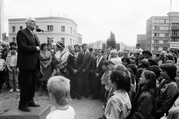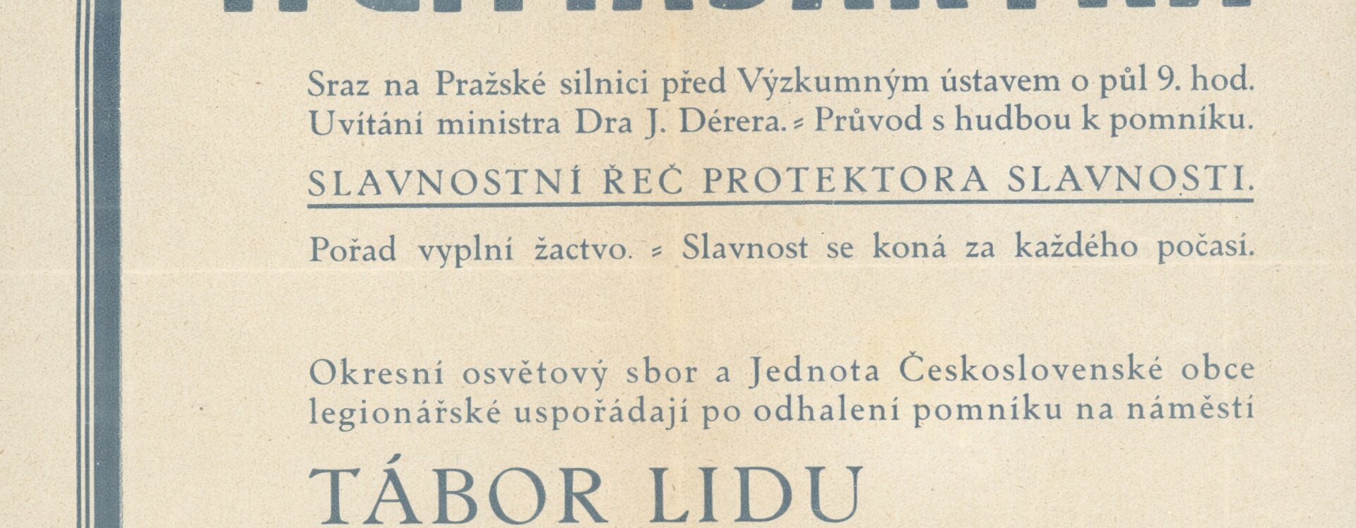 Odhalení pomníku se konalo v neděli 1. října 1933 a zúčastnilo se jej přibližně 5000 osob, z toho asi 2000 školních dětí. Po úvodním projevu ministra školství a národní osvěty Dr. Ivana Dérera před Výzkumným ústavem bramborářským následoval průvod k parčíku svaté Kateřiny a tábor lidu na brodském náměstí.