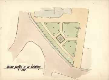 Pro figurální část pomníku byla vybrána právě zmíněná Štursova polopostava prvního prezidenta. V březnu 1933 informovaly děti městskou radu, že bronzový odlitek sochy byl zaplacen a dopraven do Brodu, a žádaly o možnost postavit pomník v parčíku u kostela svaté Kateřiny. Město umístění pomníku schválilo. Na jednoduchém štíhlém žulovém soklu se nacházel nápis z kovových liter, vyrobený a věnovaný Státní průmyslovou školou v Hradci Králové: DĚTI NÁRODNÍCH ŠKOL NĚMECKOBRODSKÝCH PRESIDENTU OSVOBODITELI T. G. MASARYKOVI 28. X. 1933.