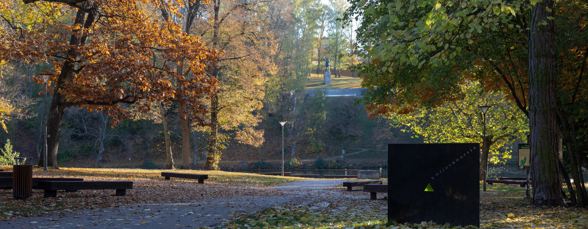 Weidenhofferův pomník není prvním objektem pojmenovaným po této slavné brodské osobnosti. Jeho jméno nesl i dřevěný altán, vystavěný v roce 1890, který stál přibližně do roku 1937 v dolní části parku Budoucnost poblíž městských hradeb. Nový monument, podobně jako altán, jakoby svou prostou formou s prvky průhledů a odlesků spíše poskytoval a rozšiřoval prostor, než přitahoval pozornost k sobě samému – stejně jako muž, jehož nám připomíná.