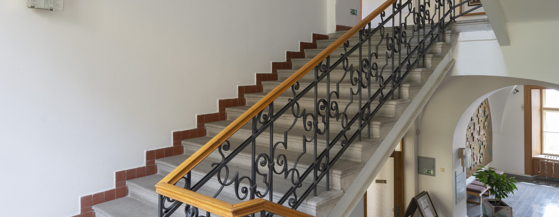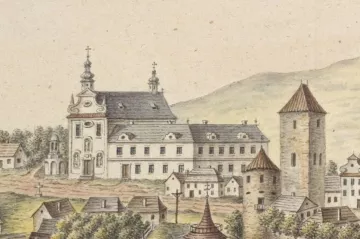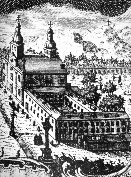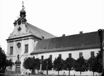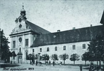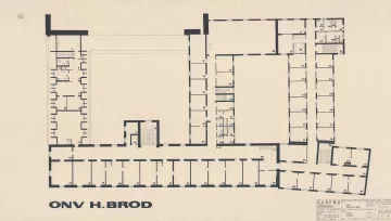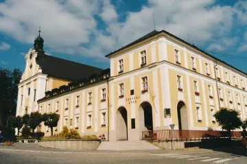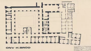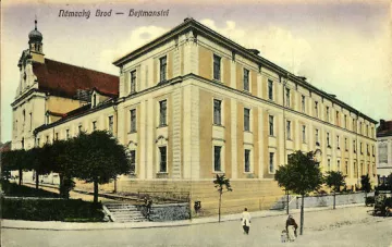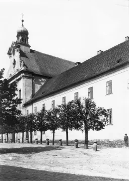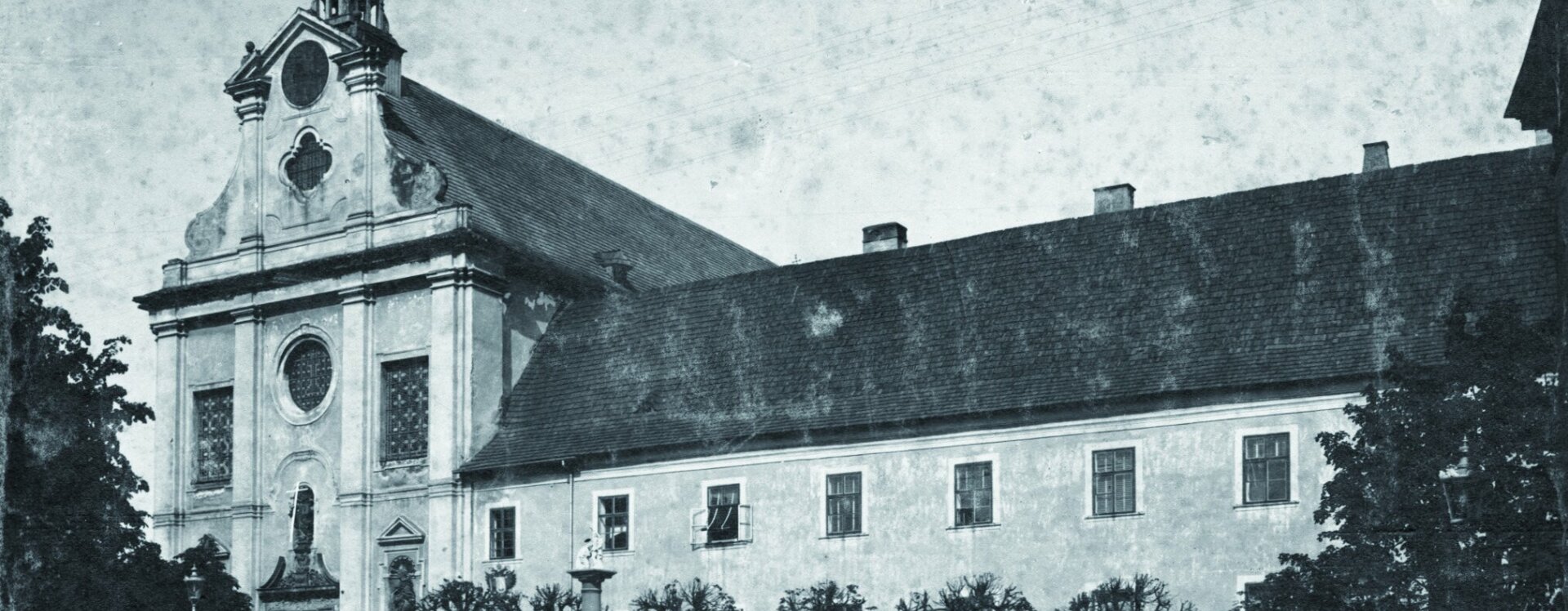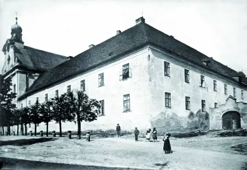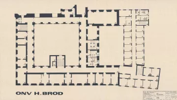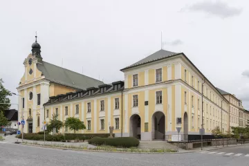 Rozsáhlý barokní areál bývalého augustiniánského kláštera s kostelem sv. Rodiny, přilehlým konventem a kaplí Božího hrobu vznikl v průběhu let 1679–1733. Konvent, jehož prostory opustili řádoví bratři v důsledku josefínských reforem, prošel roku 1815 úpravou pro potřeby gymnázia. Od roku 1908, kdy se studenti přesunuli do nově vystavěné budovy gymnázia (HB_2004), slouží stavba státní správě, která ji během 20. století několikrát upravovala podle svých potřeb.