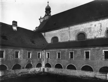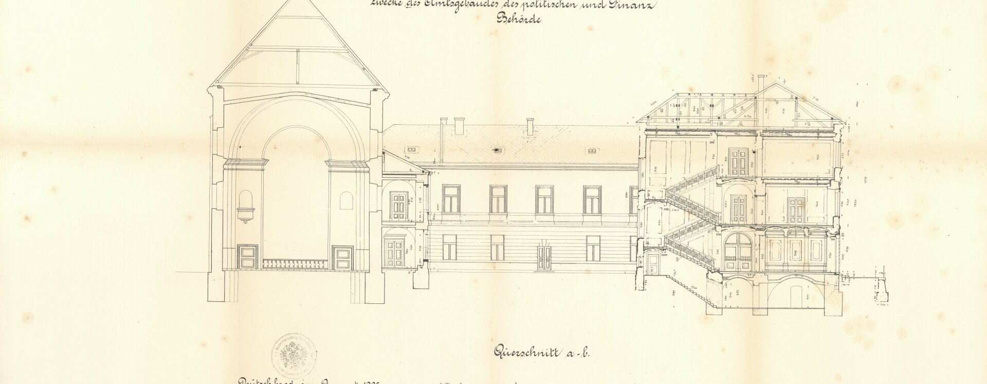 Již v roce 1905 vypracoval vrchní inženýr Václav Koudelka plány na využití areálu pro potřeby státní a finanční správy, což znamenalo v podstatě kompletní rekonstrukci celého objektu. Plány následně podrobně rozpracovalo technické oddělení c. k. pražského místodržitelství ve spolupráci se zdejším vrchním inženýrem Bohumilem Šelem. I přes ostrý nesouhlas tehdejšího zástupce památkové péče c. k. konzervátora Zdeňka Wirtha, který upozorňoval na mimořádnou hodnotu objektu, došlo k rozsáhlým bouracím a stavebním pracím, které zahrnovaly mimo jiné odstranění části jihovýchodního křídla, snesení kleneb, vybourání větších okenních otvorů v celé budově a vestavění dvoupatrového schodiště. Jižní křídlo bylo zvýšeno o další patro pro zřízení bytu okresního hejtmana a původně jednoduchá budova s hladkými stěnami kompletně přefasádována pomocí lizén a pilastrů v historizujícím stylu. Střecha byla pokryta taškami místo šindele, což definitivně dovršilo zničení původní podoby klášterní budovy. V rámci klášterního komplexu se podařilo od výraznějších zásahů uchránit v podstatě pouze kostel sv. Rodiny s přilehlou kaplí Božího hrobu.