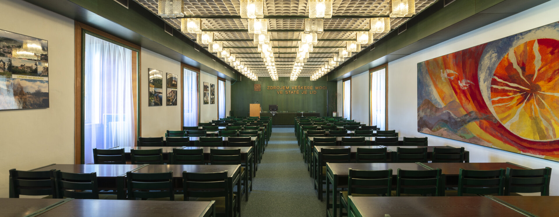Na ni navázala rozsáhlá adaptace v 70. a 80. letech 20. století podle projektu architekta Ladislava Zieglera. Došlo k vybourání nového vchodu v jihozápadním rohu budovy, do podkroví byly umístěny další kanceláře a značných změn doznaly také interiéry. V rámci jejich vybavování byly realizovány umělecké zakázky, mezi nimiž vynikají keramické stěny ve vstupní hale od Miloslava Chaloupka a výzdoba zasedacích síní, na níž se vedle Chaloupka (Mírové slunce) podíleli J. Holinka (státní znak) a Ludoslav Matušík (leptaná skla pro výplně dveří a prosklené stěny). Interiéry včetně umělecké výzdoby zůstaly až do dnešní doby v podstatě beze změn.