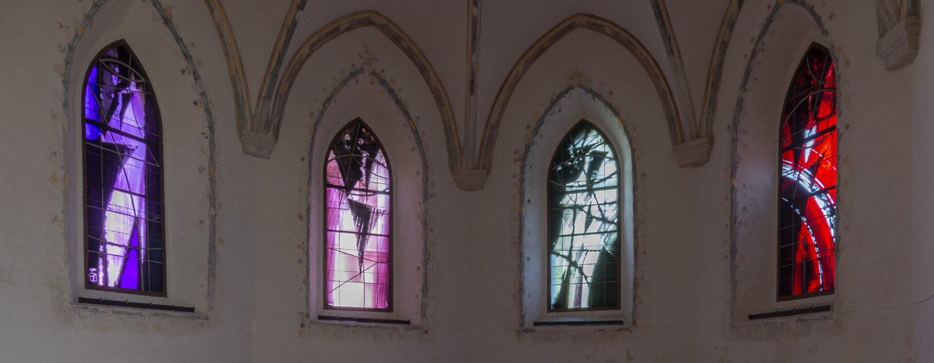 Jan Exnar. Vitraje v presbyteriu kostela sv. Vojtěcha v Havlíčkově Brodě.