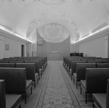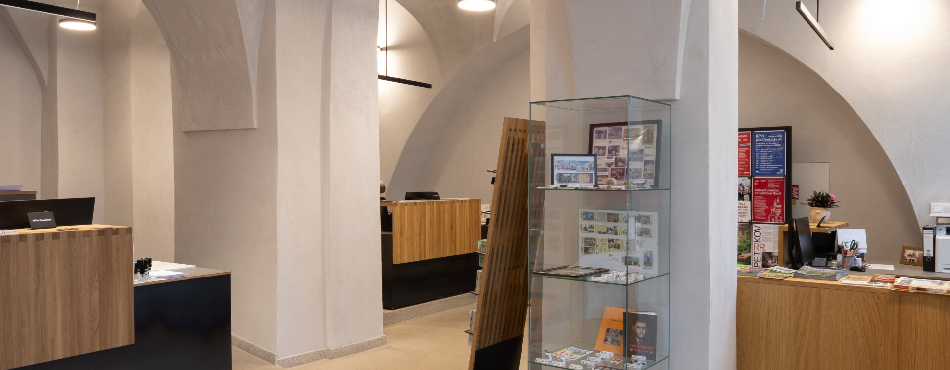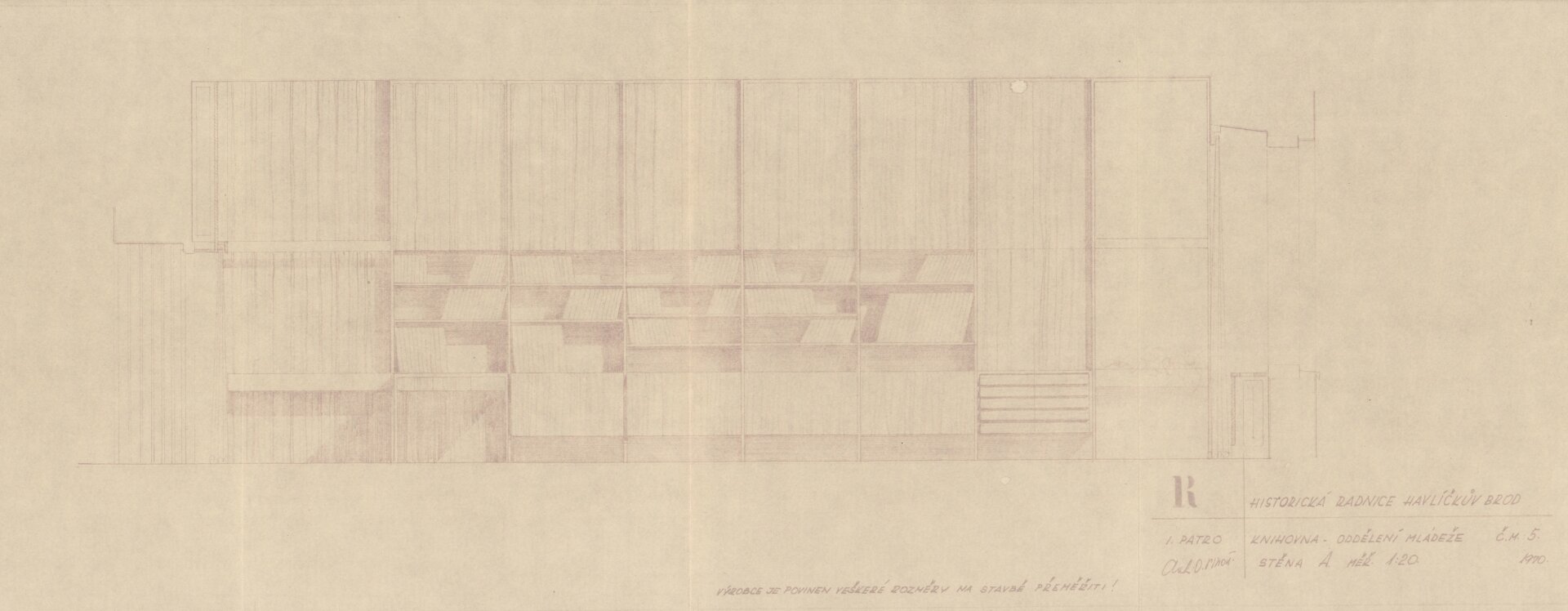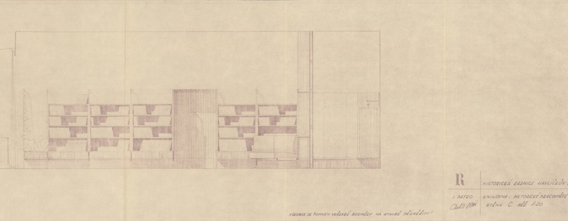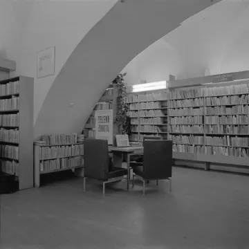 Budova byla vybavena zakázkovým nábytkem, atypickým osvětlením a kovanými mřížemi do interiéru vinárny, součást zařízení tvořily dřevěné reliéfy a plastiky. Architektonický koncept knihovny, realizovaný ve spolupráci s jejími pracovníky, konkrétně s tehdejším ředitelem dr. Francem, splňoval potřeby provozu a po svém otevření v roce 1974 knihovna patřila mezi nejmoderněji vybavené okresní knihovny v Československu. Ve stejném roce byla v hlavním sále se štukovou výzdobou ze 17. století otevřena obřadní síň.
