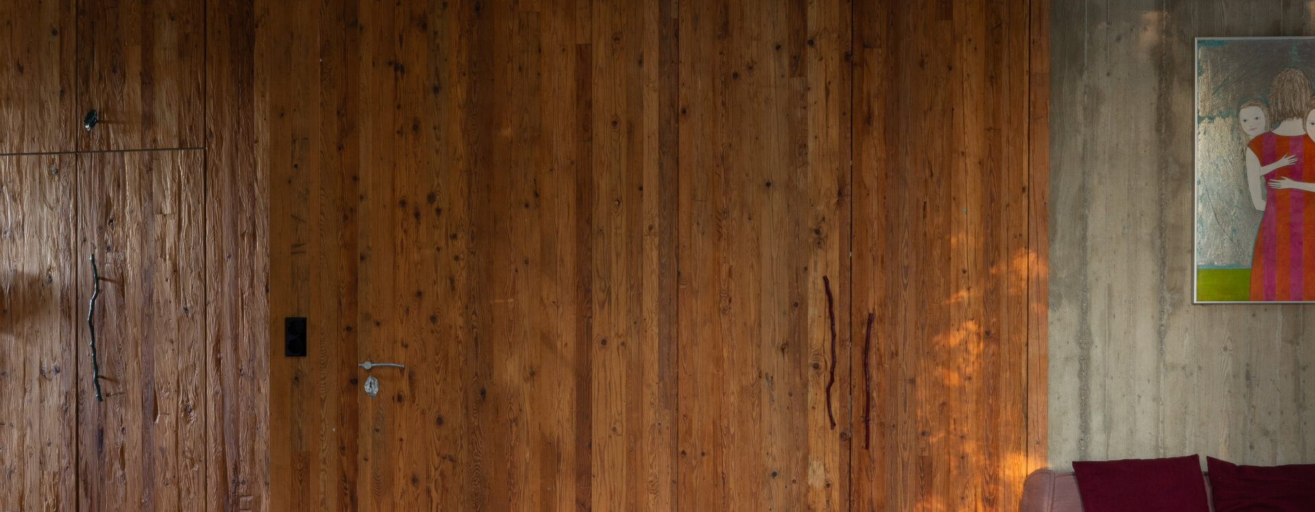 V interiéru, který architektka a designerka v jedné osobě kompletně navrhla ve spolupráci s majitelem domu, jenž zajistil i realizaci některých součástí interiéru ve své firmě, jsou použity přírodní materiály (kámen, staré dřevo a dřevěné fošny). Prvky přírody zde získávají nové využití, když se klacíky, lístky a špalíky, které investor posbíral se svou rodinou, stávají klikami, kováními a madly, odlitými z hliníku v majitelově modelárně. Součástí návrhu je i designový nábytek.