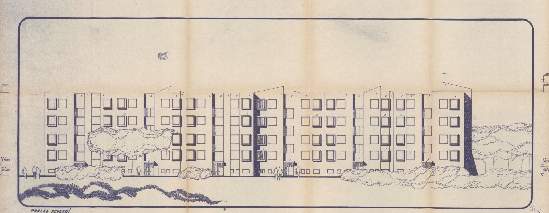 První část sídliště tvořila zástavba pěti bloků bytových domů. Architekt se na nové budovy pokusil aplikovat výraziva charakteristické okolní zástavby. Navrhl zde výškové a půdorysné ustupující schéma jednotlivých blokových úseků, jejich nejvyšší část však nemohla přesáhnout výšku běžného čtvrtého patra. Podobě okolní zástavby přizpůsobil architekt také vzhled fasád. Aplikoval na ně prvky porůznu zkosených štítů a šikmých náběhů zdí. Stejných efektů využil Driml na solitérních bytových domech, které se nacházejí v historickém centru Havlíčkova Brodu, v ulici Příčné a Na Valech. Fasády architekt výtvarně doplnil částečným obložením hnědými keramickými obklady ve vertikálním směru a vysunutím některých okenních záklenků. Celkový vzhled fasád dotváří jejich nepravidelné profilování a vizuálně tak působí jako důmyslné skladby geometrických tvarů, které navíc podporuje hra světel a stínů.