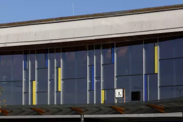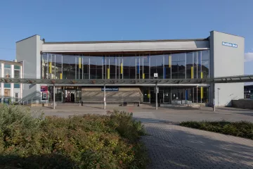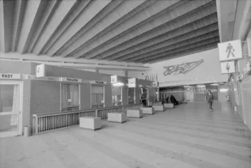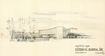 Nové nádraží, navržené v tzv. bruselském stylu, bylo od počátku koncipováno jako velkorysý prostor, schopný pojmout proudy cestujících z celé republiky. Jeho půdorys ve tvaru rozevřeného písmene „V“ působí jako gesto, které vítá příchozí a současně směřuje k nástupištím. Průčelí se rozevírá do města v mírně prohnutém konkávním oblouku, zvýrazněném horizontální markýzou. Vlevo přiléhalo administrativní křídlo s opláštěním z hliníkových profilů a modrých boletických panelů, které vnášejí do celku jasnou stopu 70. let.