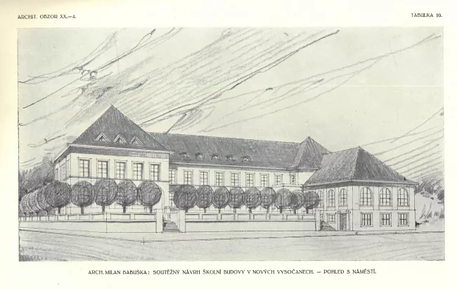Milan Babuška se narodil 20.listopadu 1880 v Dubí u Kladna, ale dětství prožil v Unhošti u Prahy. V roce 1903 se zapsal na studium architektury na pražské (české) technice a současně díky svému hudebnímu nadání studoval hru na housle. Po absolutoriu architektury, kde jeho profesory byl Josef Schulz, Adolf Liebscher a další konzervativní tvůrci, se stal profesorem na jaroměřské průmyslové škole. Současně se začal účastnit architektonických soutěží. Po první světové válce působil v letech 1919 – 1923 jako profesor na První státní průmyslové škole v Praze. První úspěch zaznamenal v roce 1911 v soutěži na dívčí školu v Jaroměři. V roce 1920 získaly jeho variantní návrhy první až třetí cenu v soutěži na spořitelnu v Německém Brodě. V letech 1921–1922 zvítězil v soutěži na sokolovnu v Hradci Králové, která byla realizována až na konci desetiletí, a v letech 1922–1924 navrhl a realizoval gymnázium v Rychnově nad Kněžnou. Na úspěch v soutěži na královéhradeckou sokolovnu navázal účastí v soutěžích na sokolovny v Roudnici nad Labem, Náchodě a v Opavě. Roudnická sokolovna byla realizována v letech 1929–1930, náchodská v roce 1930. V Náchodě Babuška ve stejném roce navrhoval (realizoval) poštu. Babuška se vedle sokoloven a spořitelen soustředil na školní budovy: účastnil se soutěží na chlapeckou a dívčí školu ve Strakonicích, dívčí školy v Turnově, školy v Unhošti, měšťanské školy v Ratajích nad Sázavou, v Polici nad Metují a jinde. Jeho projekty škol byly také často oceněny. Realizovaná byla v letech 1926–1927 podle Babuškova projektu škola v Hevlíně u Znojma nebo česká škola v Dolních Bludovicích na frýdeckomístecku.