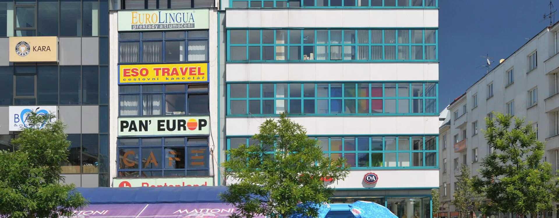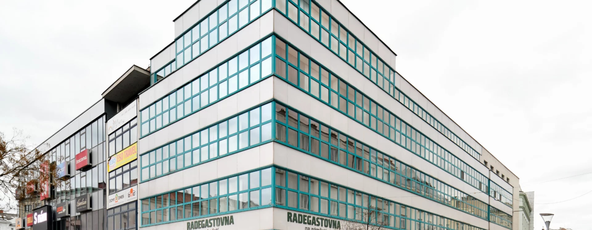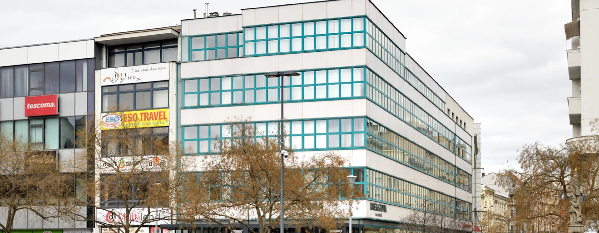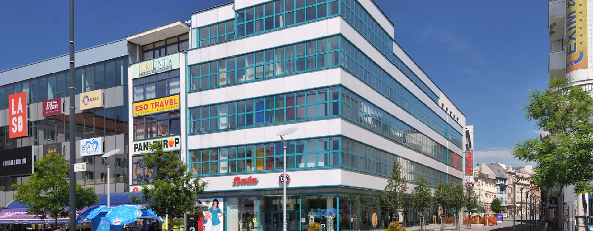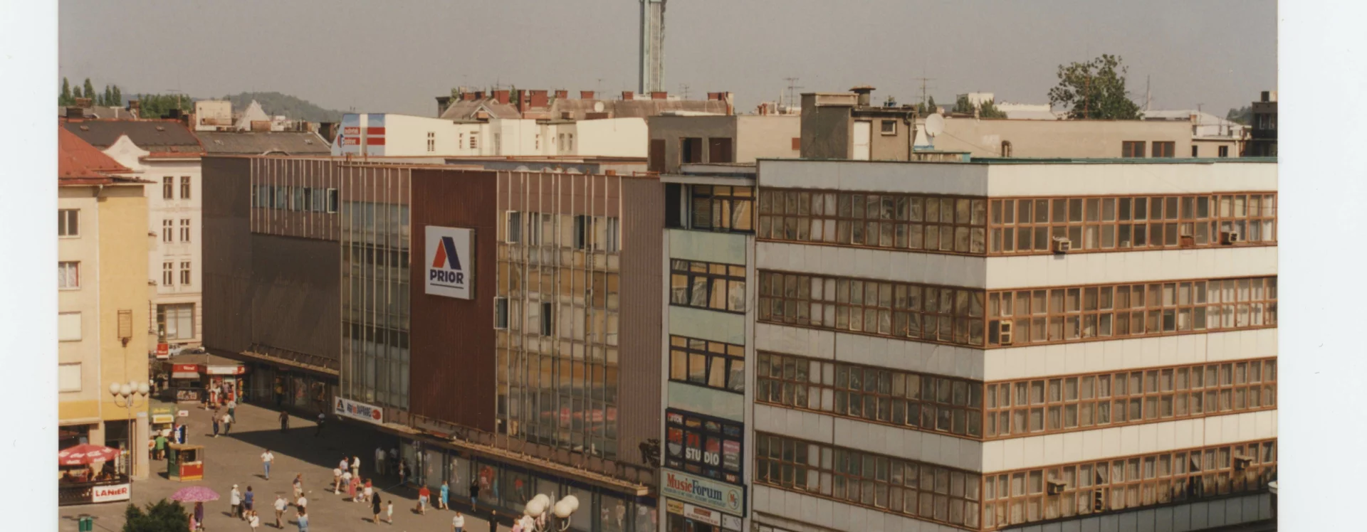 K novostavbě obchodního domu na Masarykově náměstí přistoupila i firma Baťa. Ta měla vlastní síť prodejen s opravnami obuvi ve všech větších městech pod názvem Dům služeb. V Moravské Ostravě sídlil Dům služeb původně v dvoupatrovém domě čp. 25 s historizující fasádou, jehož hloubkovou dispozici ovlivnila podélná parcela vycházející ze středověkého rozvržení města. Ještě v roce 1926 byla do interiéru vestavěna galerie v úrovni mezaninu a vybudován nový portál, ale již o tři roky později bylo rozhodnuto o demolici domu a výstavbě zcela nové, větší budovy. Pro tento záměr firma v roce 1929 zakoupila a následně zbořila i sousední nárožní dům čp. 24.