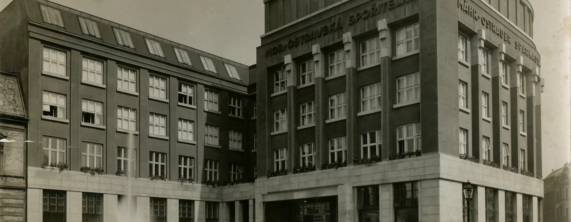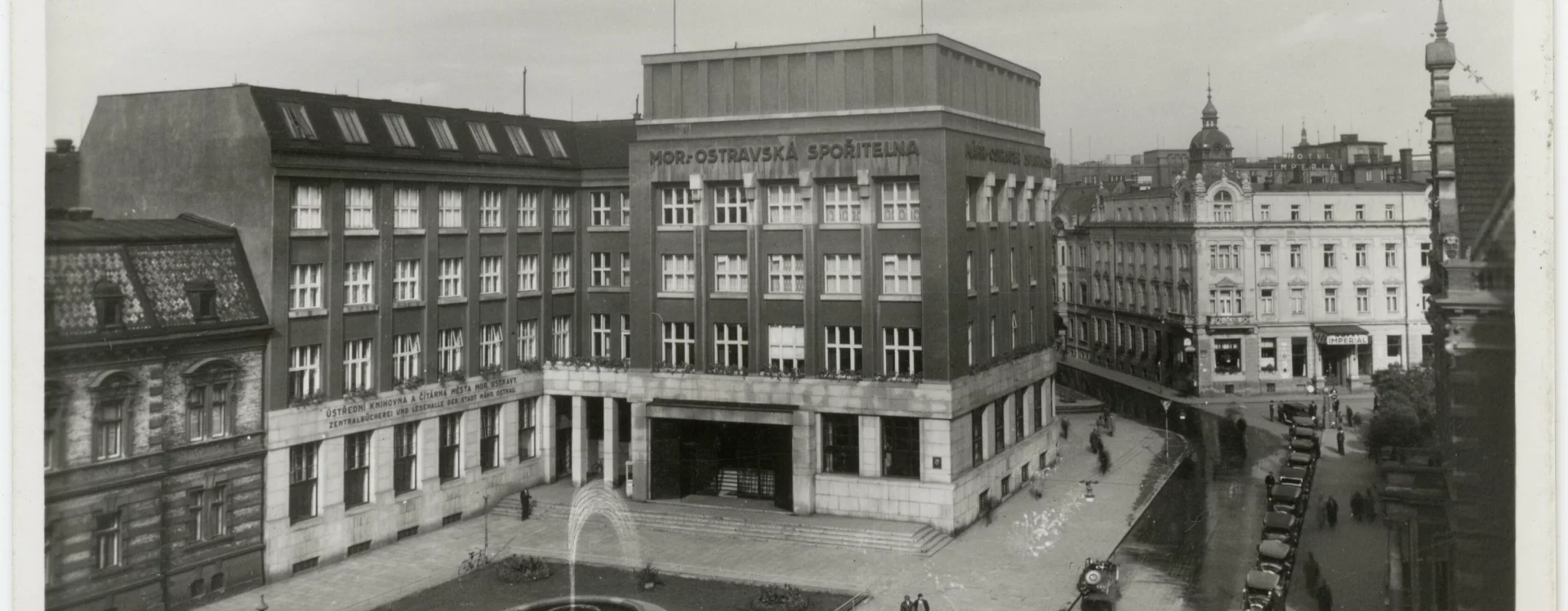 Městská spořitelna byla v Moravské Ostravě založena již v roce 1871. Nejprve sídlila v objektu radnice, v roce 1902 si postavila vlastní budovu na rohu tehdejší Těšínské a Johannyho ulice (dnes nároží třídy 28. října a Sokolské). Sloučení se spořitelnami v obcích připojených v rámci vzniku Velké Ostravy vyvstala potřeba nového sídla, které by zajistilo nové prostory, ale také bylo dostatečně reprezentativní. Vhodné místo se podařilo získat přímo na Nádražní třídě, kde již stálo několik finančních institucí (Anglo-československá banka, Živnostenská banka, Unionbanka). Význam této komunikace, spojující Moravskou Ostravu s Přívozem, vzrostl po vybudování nádraží v Přívoze v roce 1847. Samotná Nádražní ulice byla vytyčena v roce 1860 a postupně zastavována městskými domy. V jejím křížení s ulicí 28. října se nacházela stanice místní dráhy a nedaleko od ní, v sousedství Německého domu na nároží Tyršovy a Zámecké ulice, se rozkládal Schillerův park. Tento pozemek v majetku města byl vybrán pro novostavbu spořitelní budovy. Spořitelna ho v roce 1926 koupila s podmínkou, že také nechá na vlastní náklady překlenout mlýnskou strouhu, která tudy protékala, a provést zahradnické a architektonické úpravy zbývající části parku.