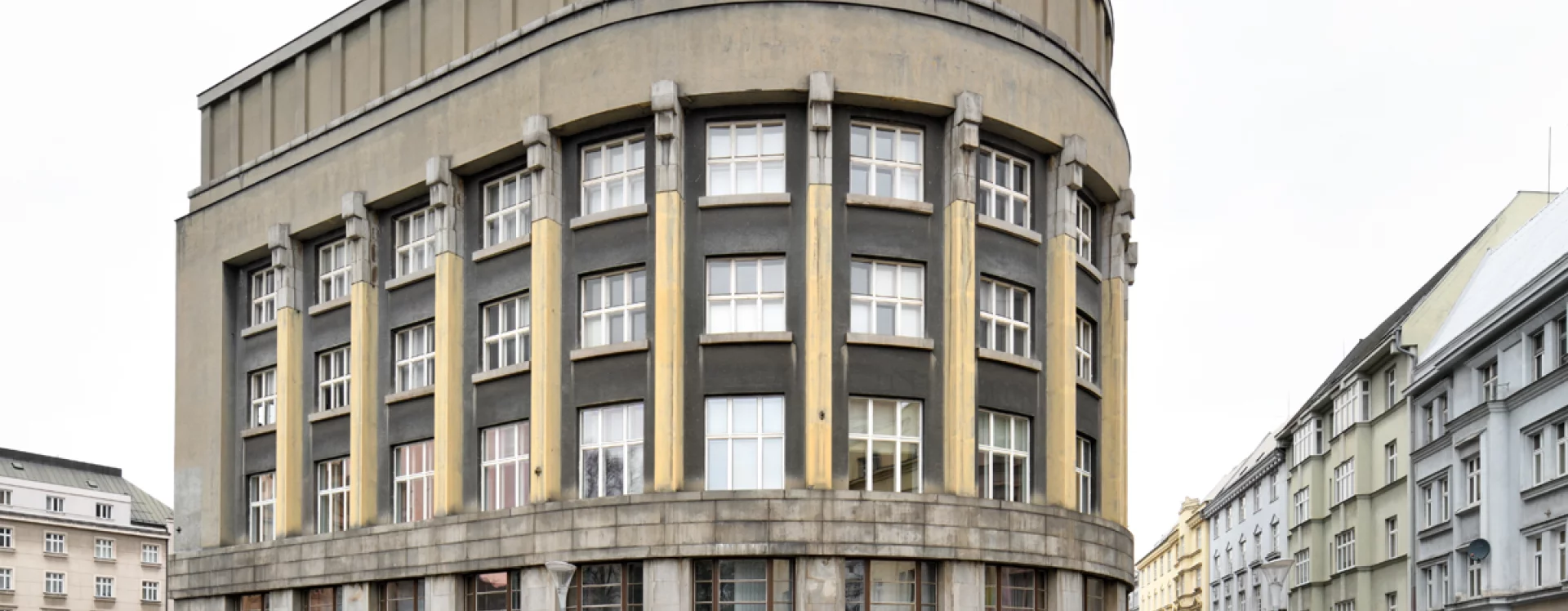 Reprezentativnosti budovy dosáhl Kotas použitím luxusních materiálů, jako byla jemnozrnná slezská žula nebo černá leštěná labradorská žula se stříbrnými zrny na fasádě, nebo vzácná dřeva, mramor a travertin v interiéru. Architekt navrhl i atypická kubická a skružová svítidla či kryty radiátorů. Vybavení dodaly přední československé podniky, jako Umělecko-průmyslové závody v Brně, nábytkové dílny Josef Volek z Valašského Meziříčí nebo bytová společnost SBS Brno.