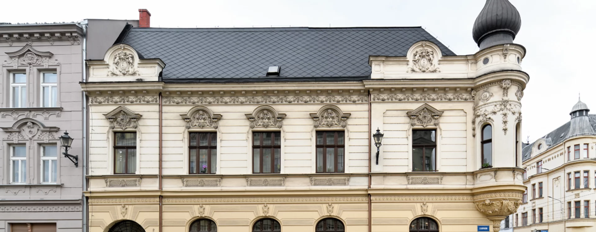 Po schválení regulačního plánu Přívozu podle projektu Camilla Sitteho v roce 1893 se obec snažila o co nejrychlejší zastavění nově vytyčeného centra budoucího města. Již v prosinci 1893 vydala inzeráty na prodej stavebních parcel v okolí náměstí a přilehlých ulic. Nová zástavba měla splňovat několik předem daných podmínek. Domy musely být nejméně jednopatrové, postavené v řadové zástavbě čili těsně vedle sebe a podobu jejich fasády schvalovalo vedení obce. Stavebníci také měli pozemek zastavět nejpozději do tří let, jinak si obec vymínila právo odkoupit ho zpět a prodat někomu jinému. Dva velké pozemky, které tvořily základ nového centra, obec rozdělila v první fázi na 15 (na jihu) a 12 (na severu) stavebních parcel. Ty si zakoupili nejen soukromníci za účelem výstavby vlastního domu, ale také stavební firmy, které plánovaly nově postavené budovy pronajímat nebo dále prodávat.