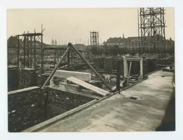 Mezitím vznikla 1. ledna 1924 Velká Ostrava a potřeba nové radniční budovy se stala ještě naléhavější. Stavba započala v dubnu 1925 budováním severního křídla, do nějž mělo být původně umístěno sídlo župy, která ale nakonec nevznikla. Na realizaci dohlížel Fischerem vybraný mladý brněnský architekt Karel Kotas, který také upravil prováděcí plány. Střední a jižní křídlo se začaly stavět v roce 1926. V témže roce město vyhlásilo architektonickou soutěž na regulaci radničního náměstí, kterou vyhrál Karel Kotas se svým návrhem pracujícím nikoli se symetrickým řešením předprostoru radnice jako ostatní návrhy, ale akcentujícím diagonálně vedenou Sokolskou třídu.