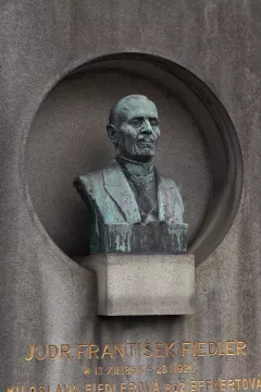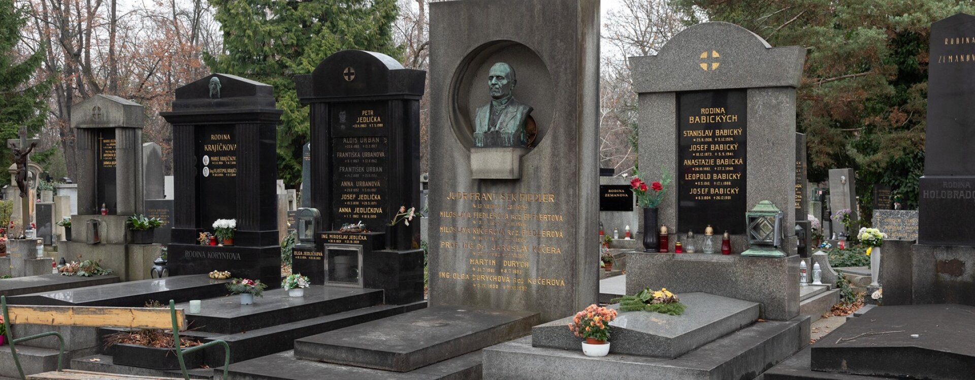Náhrobek vznikl v roce 1927 jako památka na JUDr. Františka Fiedlera, významného právníka, pedagoga a politika. Fiedler byl poslancem říšské rady a českého zemského sněmu, ministrem obchodu Předlitavska, docentem zemědělského práva na české technice (dnešní ČVUT) a profesorem správní vědy na české univerzitě (dnešní Univerzita Karlova). Byl mimořádným členem České akademie věd a umění (nyní AV ČR) a v období první světové války se aktivně podílel na snahách o československou státní samostatnost. Jeho dcera Miroslava se provdala za profesora Jaroslava Kučeru, který pedagogicky i publikačně působil v oblasti elektrických strojů na Vysoké škole strojního a elektrotechnického inženýrství (dnes Fakulta elektrotechnická ČVUT). Oba manželé jsou zde rovněž pochováni, spolu s dalšími generacemi, dcerou Ing. Olgou Durychovou a jejím předčasně zesnulým synem Martinem.