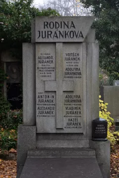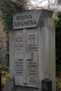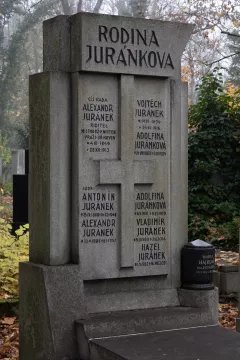 Náčrt náhrobku pro rodinu Juránkovu je doložen z roku 1914 (s nápisem Rodina Malinkova), ke stejnému roku je datována i dobová fotografie, která zachycuje realizované dílo. Jedná se o návrh, který má oproti výše zmíněným čistě kubistickým náhrobkům k tomuto stylu již podstatně volnější vztah. Hlavním kompozičním principem je kontrast mezi širokým rovem, rozšířeným pomocí masivních plochých obrub, a vertikálním náhrobkem, který je tvořen asymetrickou skladbou různě tvarovaných hmot. Tyto hmoty využívají jak šikmé plochy a zkosení, tak nově i válce, a to i v podobě „negativů“, tj. konkávně vybraných válcovitých útvarů. Centrální prostor má stylizovaný reliéfní kříž, který zde více než náboženský symbol představuje kompoziční svorník a zároveň rozčleňuje plochu stély na jednotlivá nápisová pole. V čele rovu je umístěna kamenná žardiniéra – místo pro výsadbu živých rostlin se v Janákových návrzích, ať už určených k realizaci, či pouze ideových, vyskytuje opakovaně. Náhrobek je proveden z pemrlované žuly české provenience.