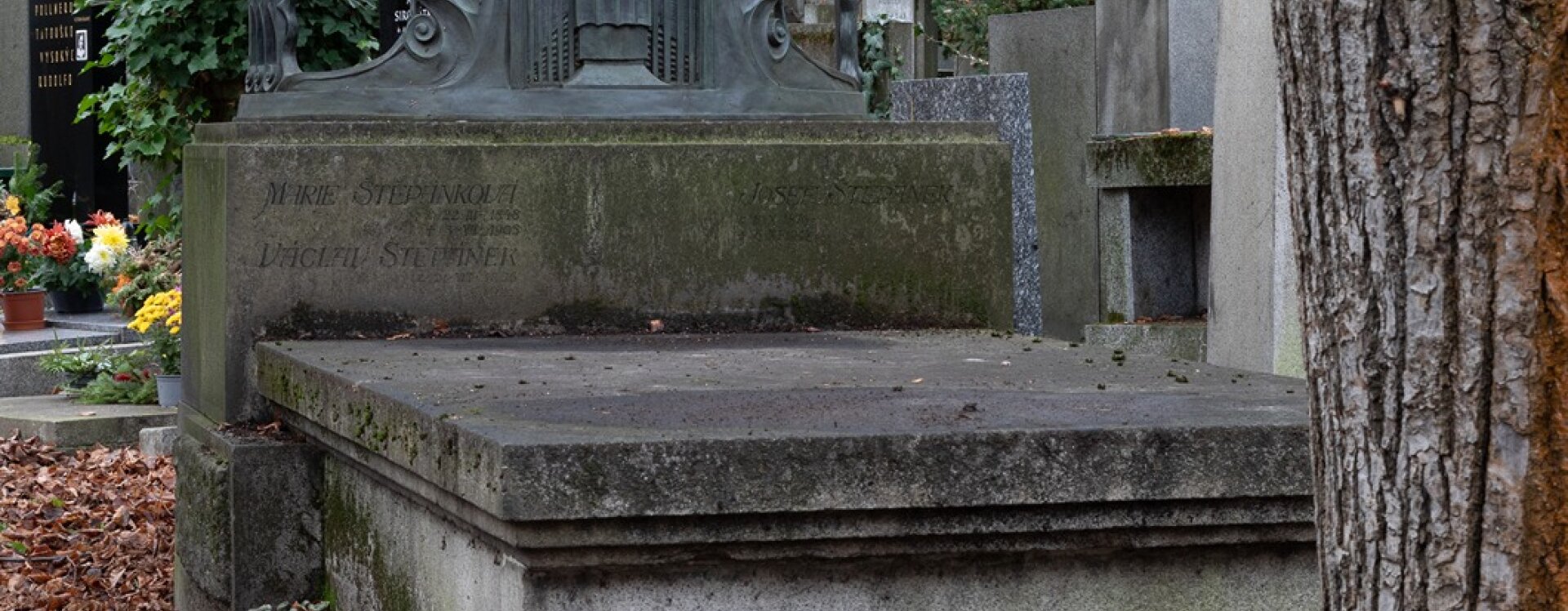 U podélné osy, blízko dvojice náhrobků pro herce Slukova a Vojana, vytvořených dvojicí Kotěra – Sucharda, navrhl Jan Kotěra další hrobku: tentokrát pro rodinu pražského měšťana Václava Štěpánka, mlynáře a krupaře, majitele mlýna na dnešní Novotného lávce. Jako první v ní byla pochována jeho žena Marie (1848–1905).