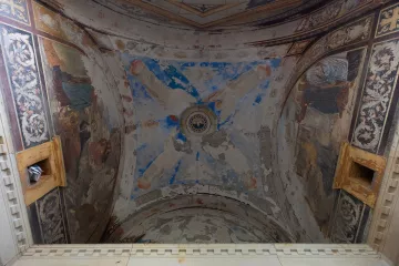 Výmalbu vnitřních prostor, kterou chtěl Barvitius původně „ze strategických důvodů" svěřit Matyáši Trenkwaldovi, provedl František Sequens. Na klenbě ústřední kaple je vypodobněna čtveřice andělů s žehnající Boží pravicí. Náměty v bočních lunetách (vzkříšení syna vdovy v Naim a vzkříšení Lazara), které korespondují s výzdobou exteriéru, nepochybně vyjadřují naděje stavebníků na vzkříšení při druhém příchodu Krista. Dle Sequensova dopisu z ledna 1874 měly náklady na malbu technologií fresco-seco činit 3 200 zlatých, dalších 100 zlatých pak měla stát výmalba malých figur „v katakombách". Interiéru ústřední kaple měl dominovat nerealizovaný krucifix s postavami Panny Marie a Jana Křtitele z nehvizdského kamene od Ludvíka Šimka. Na sochařské výzdobě se měl podílet také Eduard Tom Bureš. S projekčními pracemi v Ullmannově kanceláři vypomáhal syn Barvitiovy sestry Bedřich Münzberger.