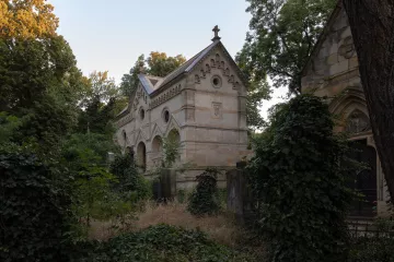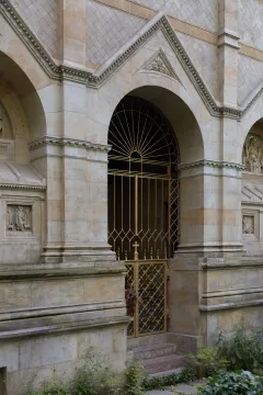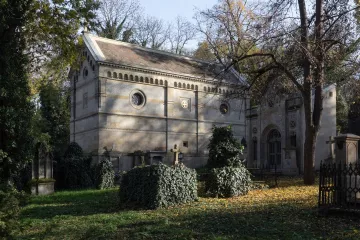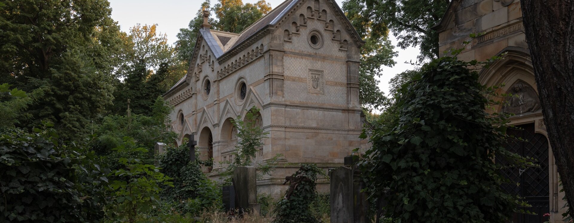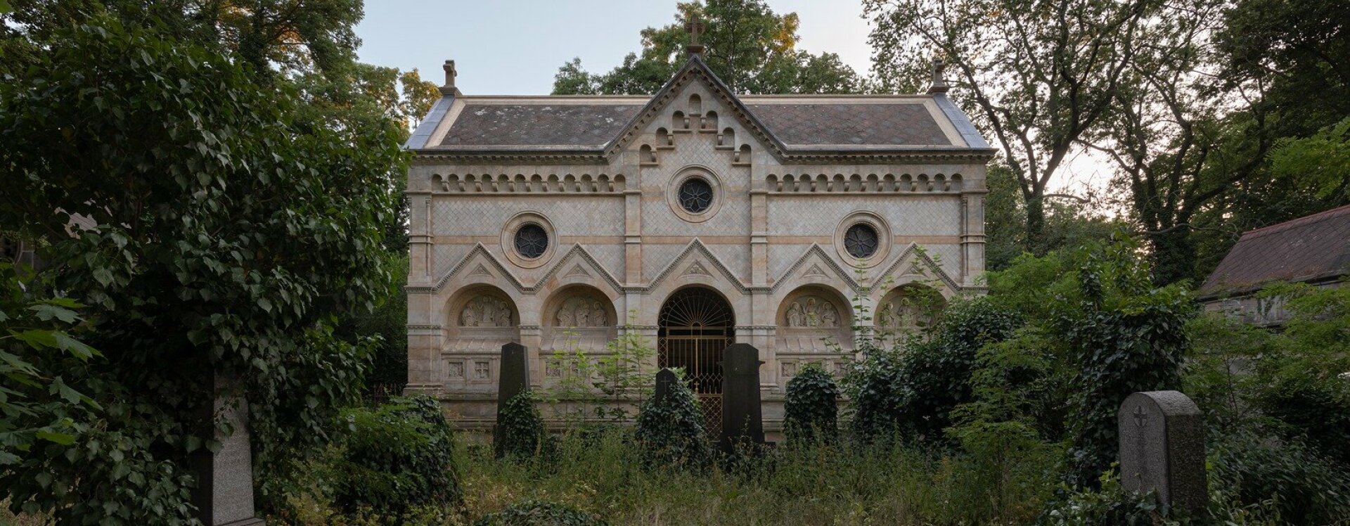 Stavební povolení pro velkolepou kaplovou hrobku bylo uděleno v květnu 1868 a stavebně dokončena byla v roce 1873. Ve své přísně symetrické, zcela výjimečné koncepci dvojhrobky je stavba v nadzemní i podzemní části utvářena jako trojdílná. Ze střední prostory lze vejít do postranních kaplí obou rodin a sestoupit do podzemních krypt, inspirovaných raně křesťanskými katakombami. Slohově představuje syntézu řady východisek (podobně jako Rudbogenstil, tehdy módní v německy mluvících zemích). Dle Pavla Kaliny stojí „mimo čas". Základní koncepce je novorománská, obohacená o raně křesťanské a renesanční vlivy. V řešení detailů se uplatňují italské vzory – takovým příkladem je nakonec nerealizované osvětlení interiéru hrobky půlkruhovými otvory s ozdobným mřížovím.