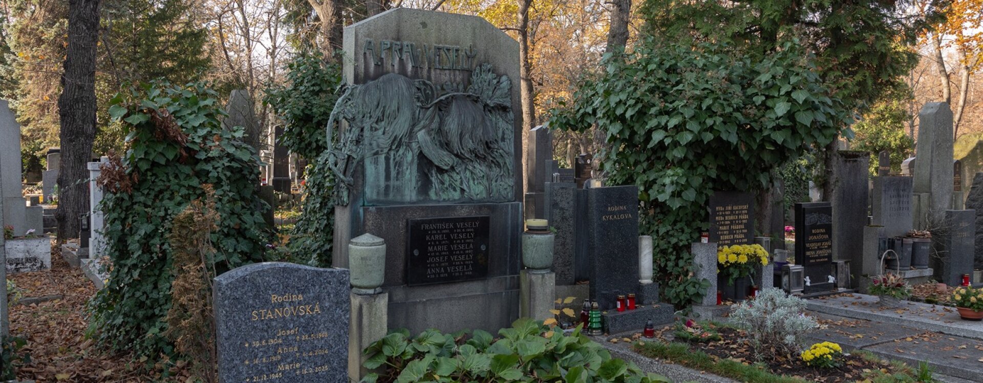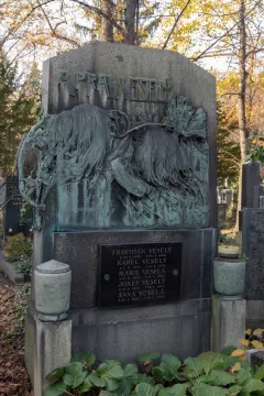 Pohřbeným je zde Antonín Pravoslav Veselý, typograf, novinář, publicista, který na konci 19. století reprezentoval socialistickou levici. Pracoval v Politickém klubu dělnickém v Praze a jako redaktor působil v časopisech Základ, Omladina a Pokrokové listy. Později vstoupil do Českoslovanské sociálně demokratické strany a stal se redaktorem Práva lidu. V roce 1894 byl v procesu s omladináři odsouzen k sedmi měsícům vězení. Odnesl si z něj tuberkulózu, na jejíž následky ve věku třiceti let zemřel.