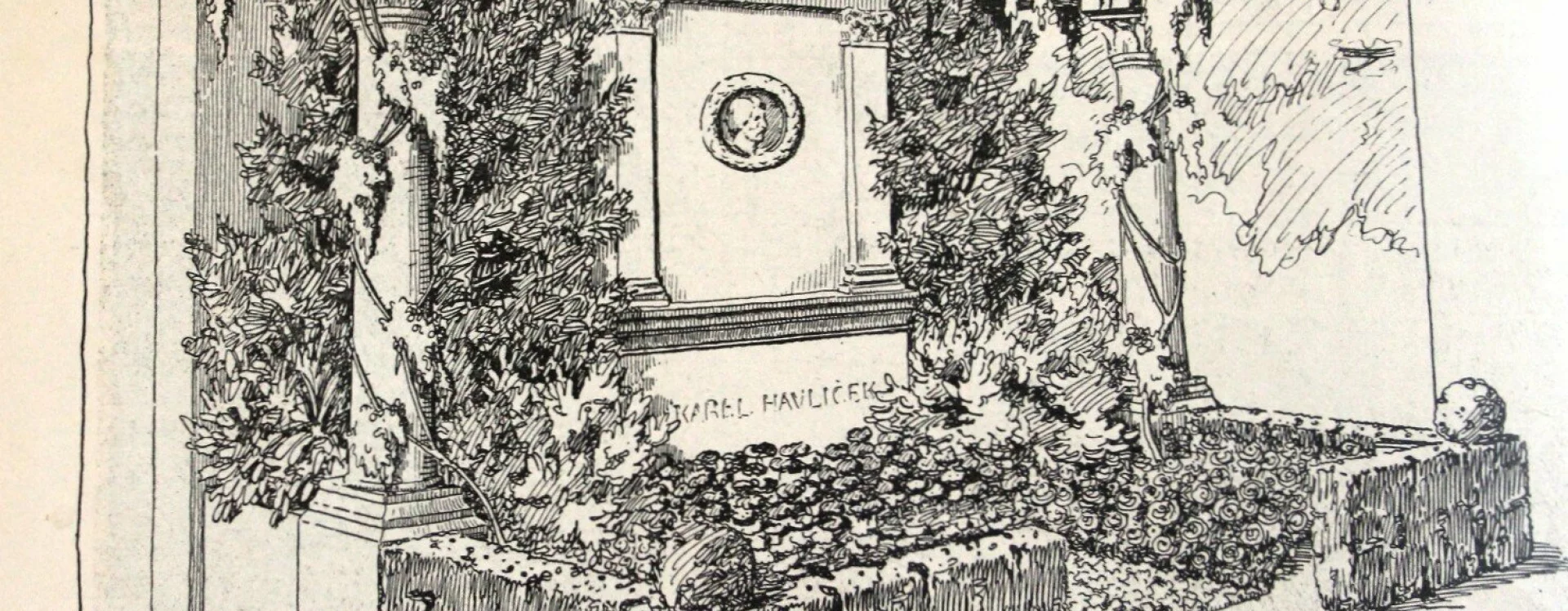 Od roku 1856, kdy sem byl pochován, označovala místo pohřbu jen provizorní deska s nápisem Karel Havlíček a jeho choť Julie, kterou roku 1870 nahradil náhrobek zřízený spolkem Svatobor. Autorem architektonického řešení byl Josef Zítek, tvůrce návrhu budovy Národního divadla, jehož spolek o projekt od roku 1867 upomínal. Sochařská výzdoba byla, stejně jako v případě „zlaté kapličky“, svěřena Bohuslavu Schnirchovi.