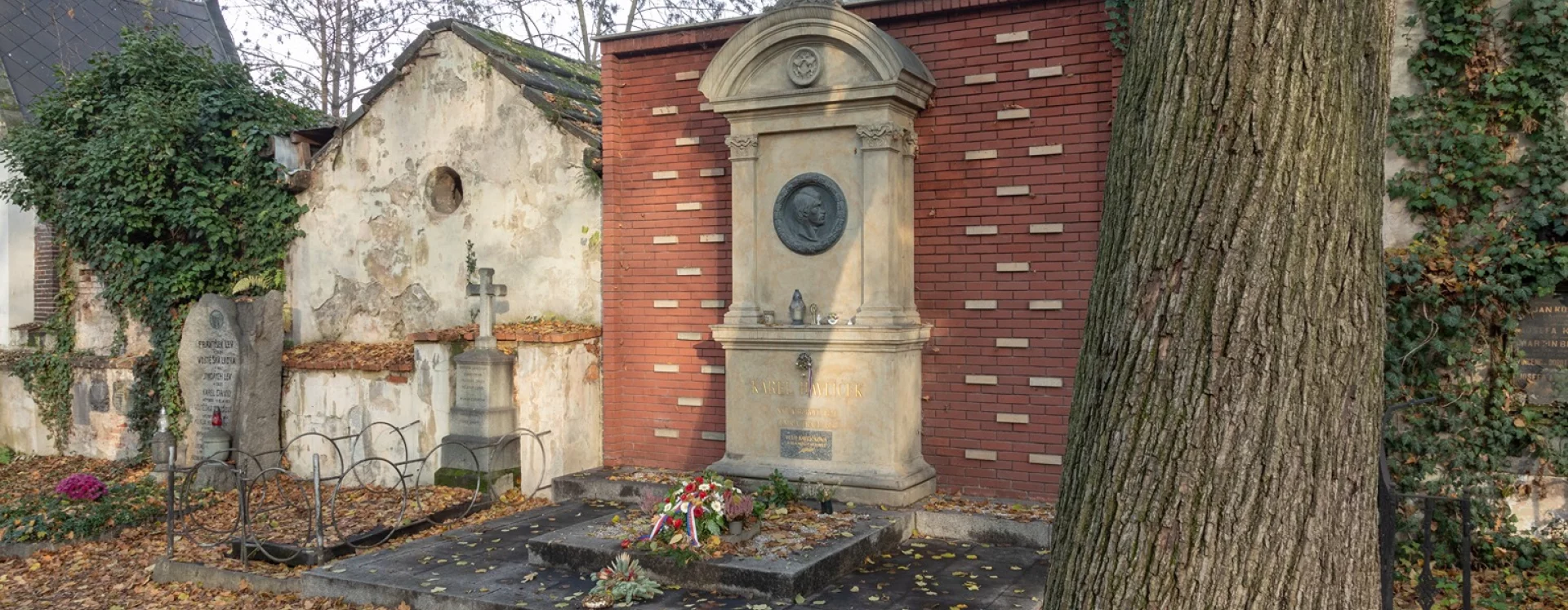 Hrobka Karla Havlíčka Borovského je jednou z nejvýznamnějších ukázek novorenesanční funerální architektury na Olšanech. Karel Havlíček Borovský (1821–1856) byl vůdčí osobností českého obrozeneckého hnutí, básníkem, politikem a novinářem, považovaným za zakladatele české moderní žurnalistiky. Nebál se ostře kritizovat obecné nešvary, církev ani habsburskou monarchii, za což si v letech 1851 až 1855 vysloužil internaci v tyrolském Brixenu. Zemřel rok po svém návratu do vlasti v Praze, kde mu truchlící národ vystrojil jako národnímu hrdinovi a mučedníkovi na Olšanech nevídaný pohřeb, který přerostl v mohutnou protihabsburskou demonstraci. Během této tryzny mu podle oblíbené, avšak vědecky vyvrácené legendy položila Božena Němcová na rakev trnovou korunu.