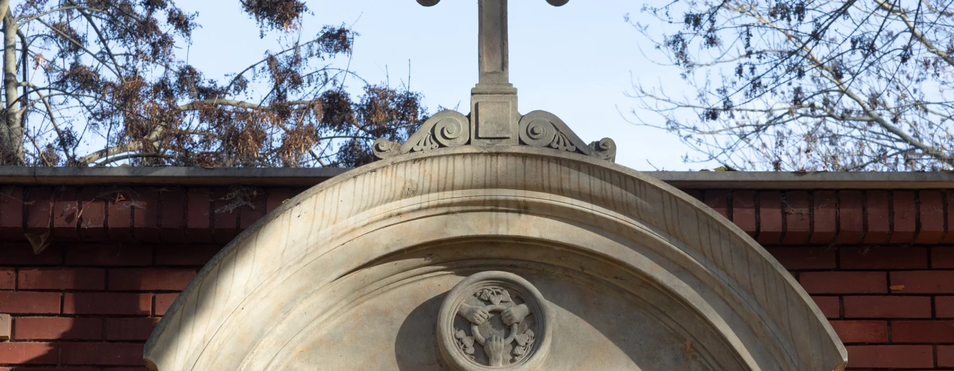 K poměrně významné úpravě místa nakonec došlo až v roce 1949, kdy byla za hrobkou postavena zeď z červených neomítnutých cihel, kombinovaných s bílými kamennými deskami podle návrhu architekta Karla Míška. Ta nápadně připomíná fasádu nedalekého kostela Nejsvětějšího Srdce Páně od Jože Plečnika. Zda se ale Míšek Plečnikem přímo inspiroval nebo na něj odkazoval, není známo.